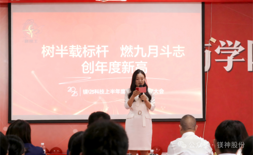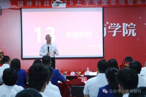 九月金秋,碩果飄香,正是總結(jié)過(guò)往、蓄力前行的美好時(shí)節(jié)。2025年9月,河北鎂神科技有限公司2025年上半年度總結(jié)暨表彰大會(huì)在鎂神商學(xué)院盛大召開(kāi)。全體鎂神人齊聚一堂,以“樹(shù)半載標(biāo)桿燃九月斗志創(chuàng)年度新高”為主題,共同回顧上半年的奮斗征程,見(jiàn)證榜樣的榮耀綻放,擘畫下半年的發(fā)展藍(lán)圖。